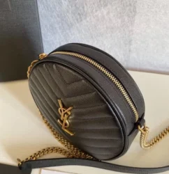 Y Circle Quilted Textured-leather Bag Black