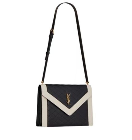 Y Gaby Satchel in Lambskin and Lamé Leather – Black&White Crafted from quilted leather. Y’s black Gaby bag exudes the