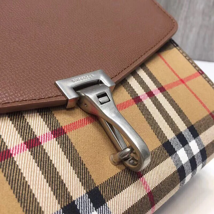 This Vintage Check and Crossbody bag features a compact. Italian-made silhouette. removable crossbody strap. and bb’s signature vintage check pattern.