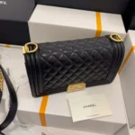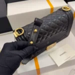 Be the first to review “CC A67086 Boy Handbag Black Lambskin Leather Gold”