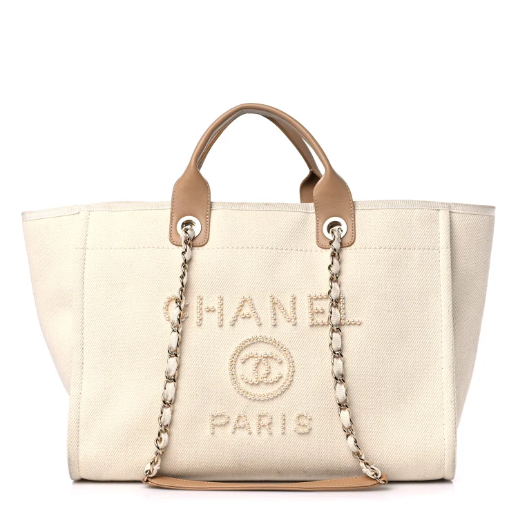 cc Canvas Pearl Large Deauville Tote Ecru Beige