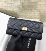 cc CO-CO Flap Wallet 15cm/5.9in Gold Hardware For Women Black Original price was: $899.00.Current price is: $158.00.