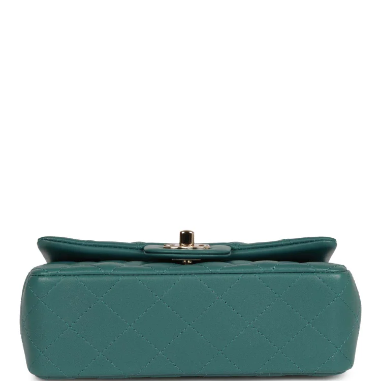 CC Mini Rectangular Flap Bag Green Lambskin Light Gold Hardware