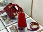 The Lady CD My ABCCD bag epitomizes CD’s vision of elegance and beauty. Sleek and refined. the timeless and modern style is crafted in cherry red patent calfskin with Cannage stitching. creating the instantly recognizable quilted texture. Pale gold-finish metal ‘D.I.O.R.’ charms further embellish its silhouette with an elegant allure. The small style features a thin. removable leather shoulder strap and can be carried by hand. worn over the shoulder or crossbody.