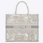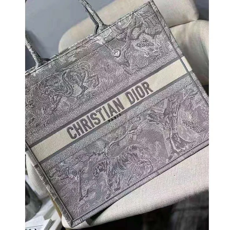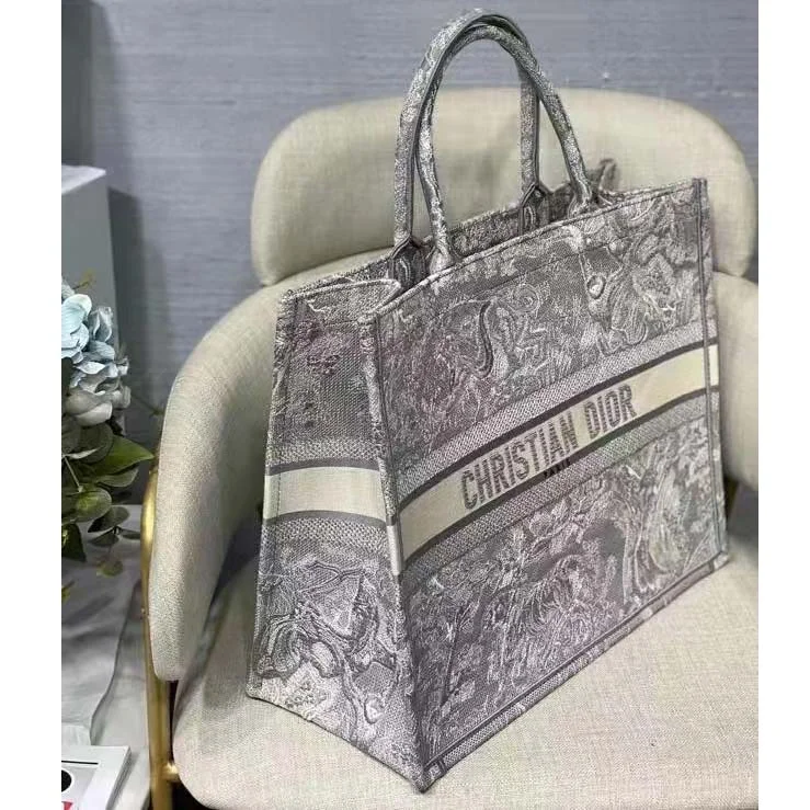 CD Unisex CD Large CD Book Tote Gray Toile De Jouy Embroidery