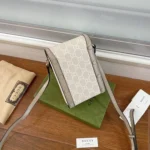 The world of Gc Horsebit 1955 evolves with the introduction of a mini bag in beige and ebony GG Supreme canvas. Inspired by archival designs. the accessory unifies the original details first introduced over six decades ago with a modern spirit. highlighting the Horsebit.