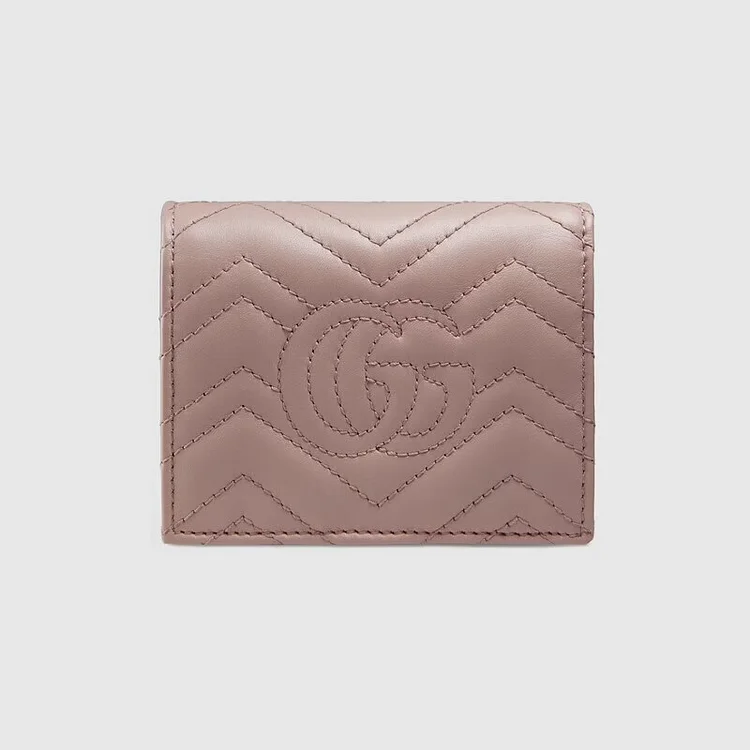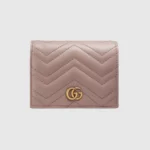 The GG Marmont collection is defined by the emblematic Double G hardware—a contemporary take on a GG archival belt buckle from the ’70s that has become a hallmark of the House. The card case wallet is crafted in soft matelassé leather that coordinates with bags of the collection.