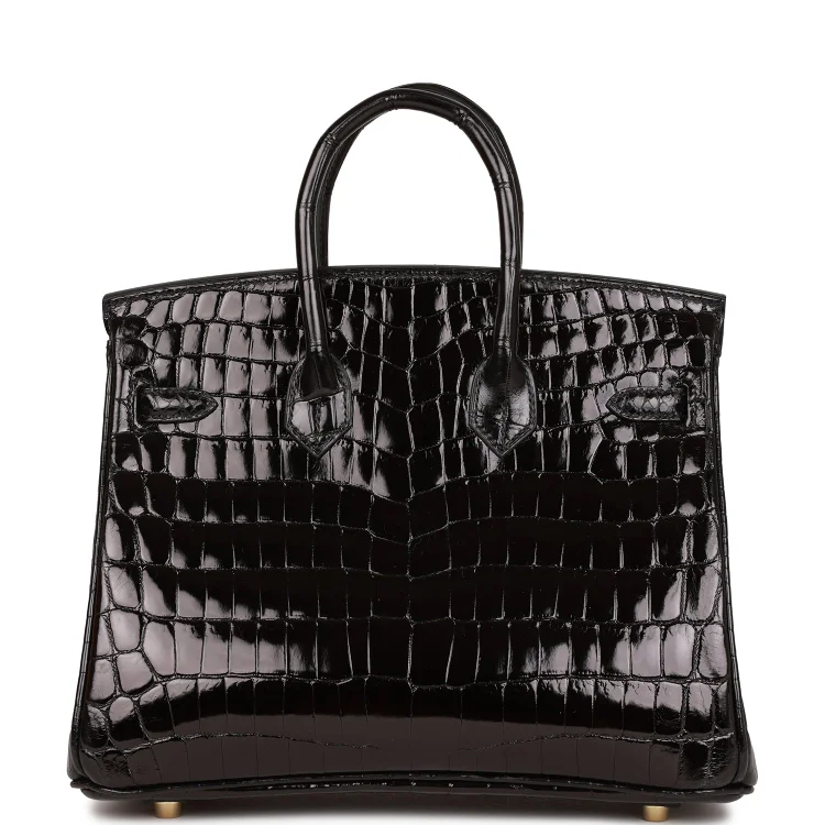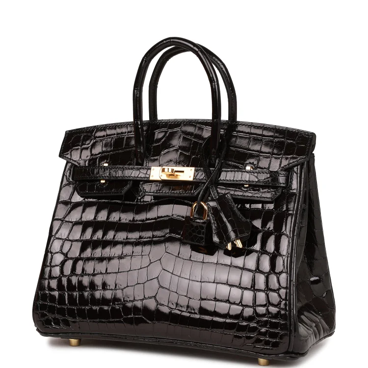 H Birkin 25 Black Shiny Niloticus Crocodile Gold Hardware