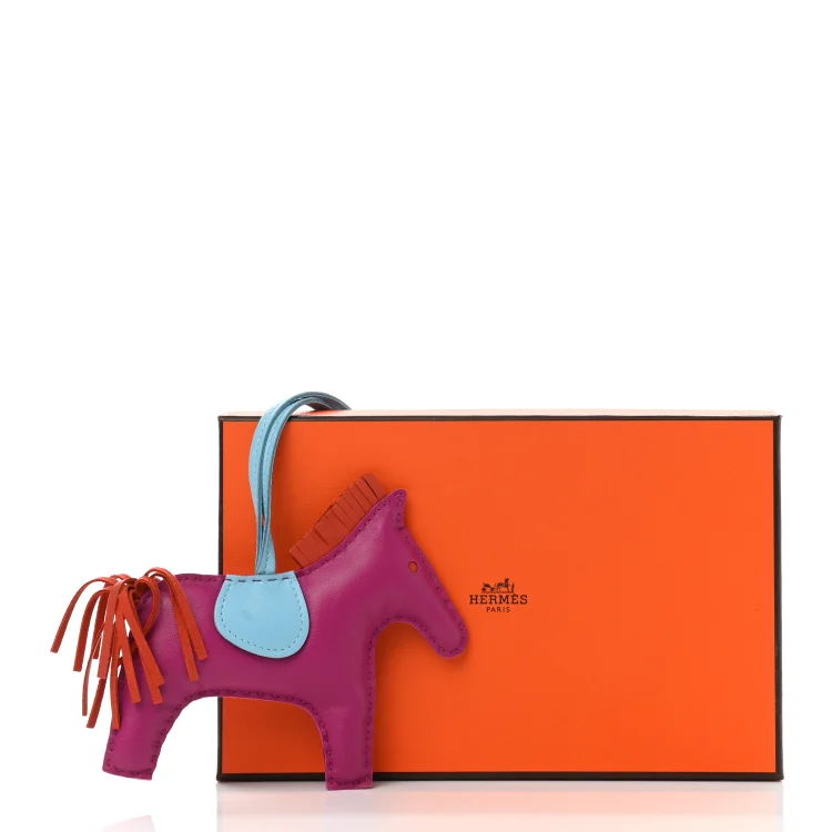 H Milo Lambskin Grigri Rodeo Horse Bag Charm MM Rose Pourpre Cornaline Celeste