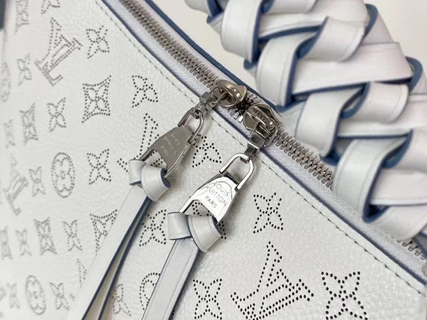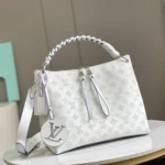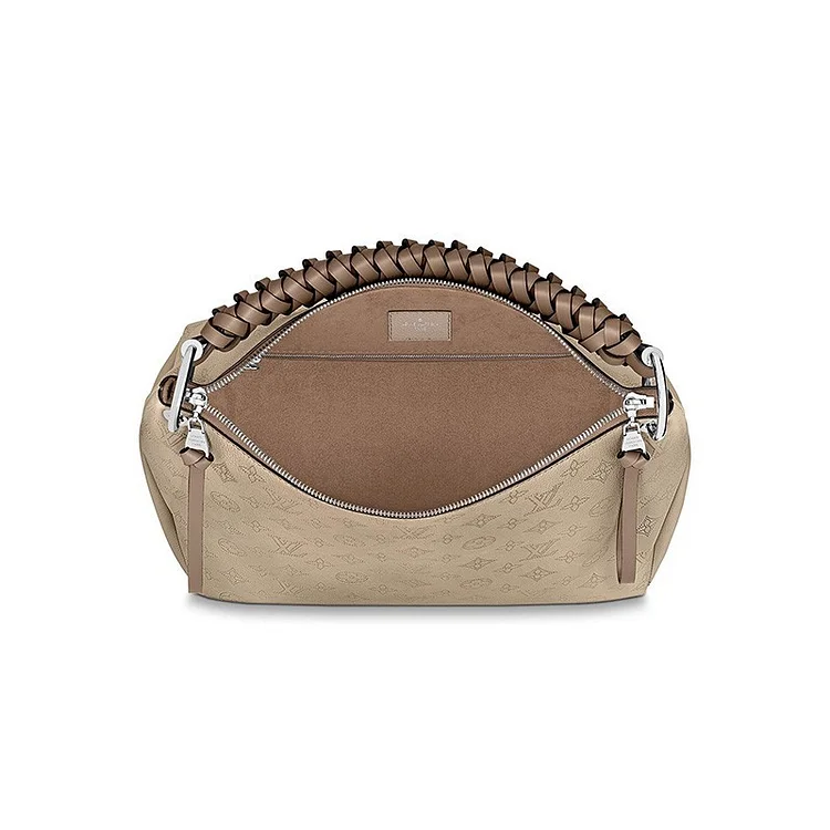 The Beaubourg Hobo MM bag is made from Mahina calf leather perforated with the Monogram pattern. It boasts a stylishly braided-leather top handle. with hand-painted edge-dyeing along the braids. The leather zip pulls and large LV charm sign the bag. A detachable. wide leather strap means that this supple bag feels comfortable against the body.