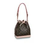 The timeless Noe bucket bag. created in 1932. has been reimagined in this charmingly diminutive format. Standing just under nine inches tall on its reinforced leather base. the Noe in Monogram canvas sports the original’s signature leather drawstring. as wel•L as an extra-long strap for casual cross-body wear.