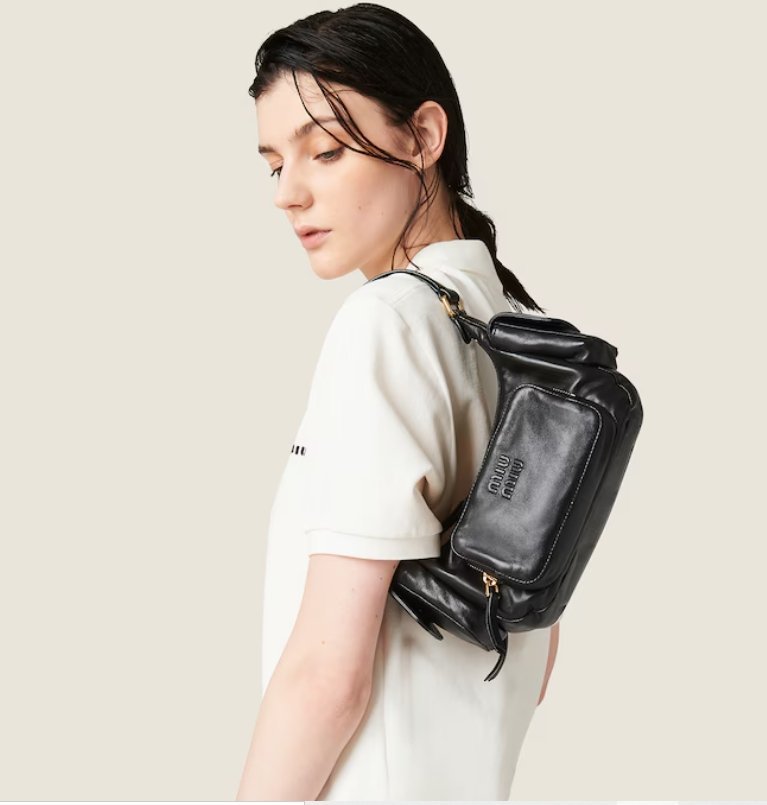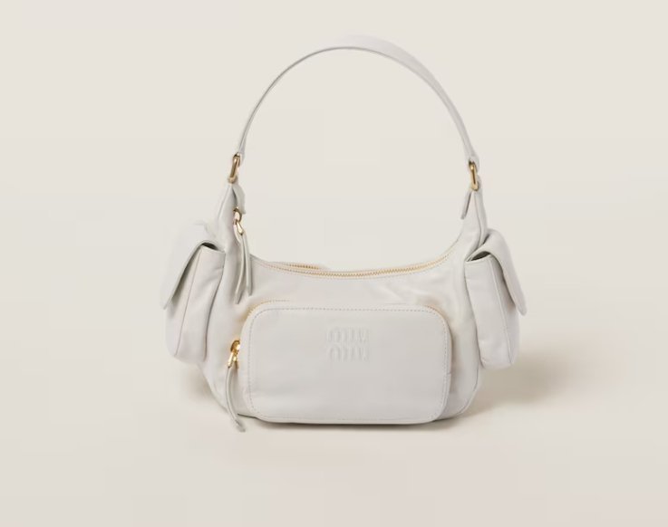 This nappa leather Pocket bag is characterized by an extremely contemporary. cosmopolitan. and captivating design. The multiple pockets border between function and decoration. while the lettering logo adds an iconic and distinctive note. The gold-tone hardware completes the design with shiny touches.