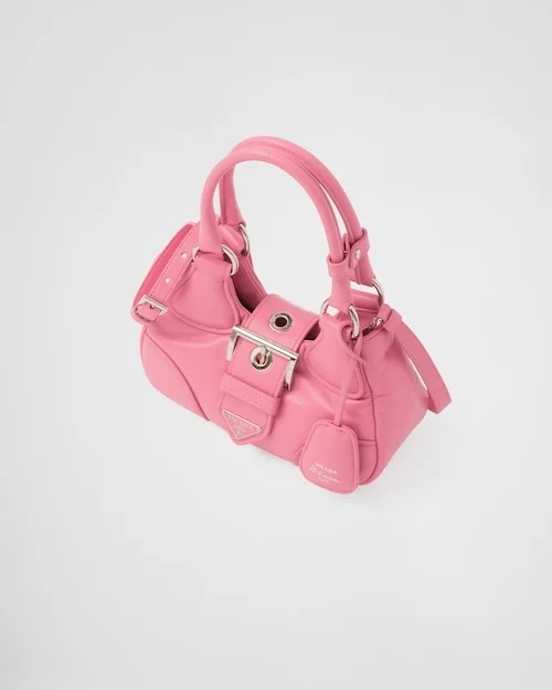Reimagining the iconic lines of a model from the PP archives from the 2000s. this nappa leather bag combines traditional elements reinterpreting them in a new way. with an innovative soft design. Softness and simplicity of the silhouette define this hobo bag. embellished by the ton-sur-ton triangle logo that frames the lettering logo. creating a three-dimensional and material game and enriching the design of the accessory.